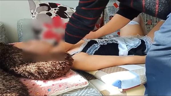 长相文静短裙外围妹,一字马张开双腿让妹子自摸