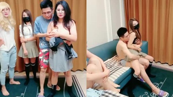 网约骚女激情4P,一男三女镜头前的淫荡